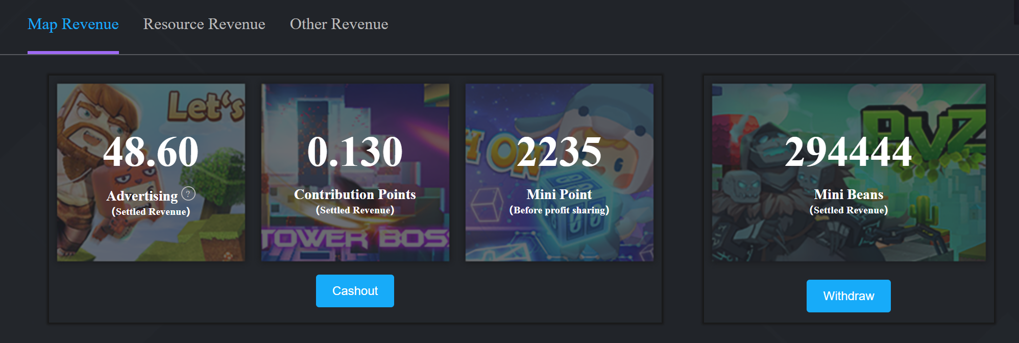 There are four types of income in Mini World, advertising revenue, contribution points, mini beans, and mini points. Among them, advertisements, contribution points and mini points can be converted into US dollars,