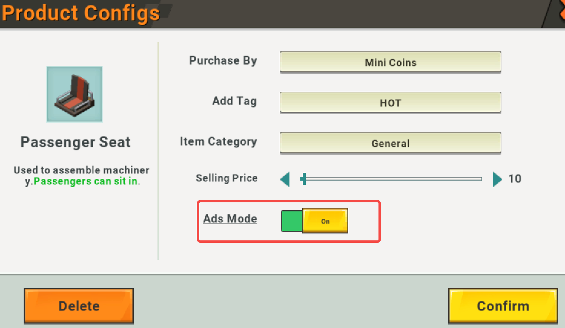 Sales price:Usually it is more reasonable to set it at 1-5 mini coins. (The maximum price that can be set will be affected by the developer level)