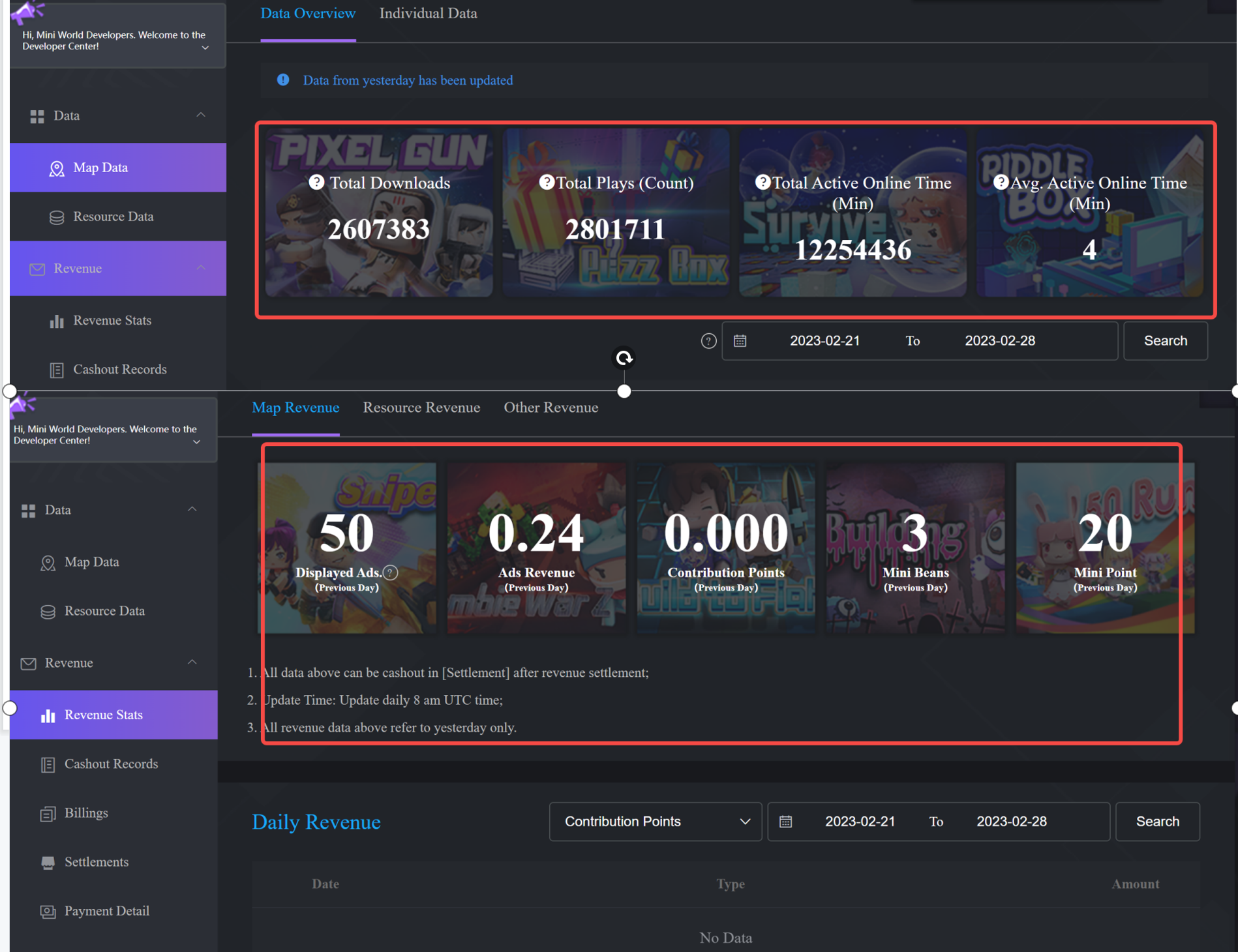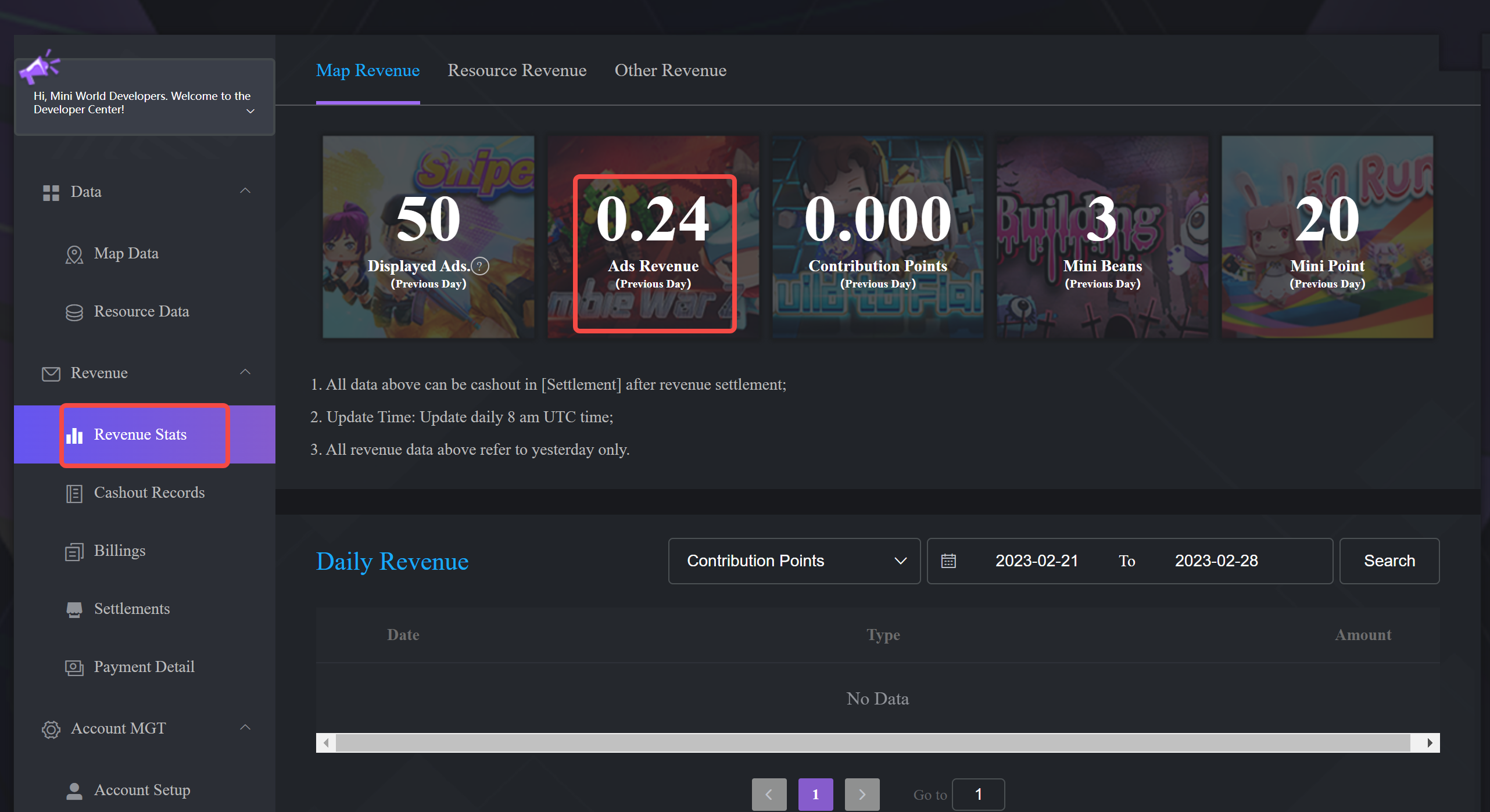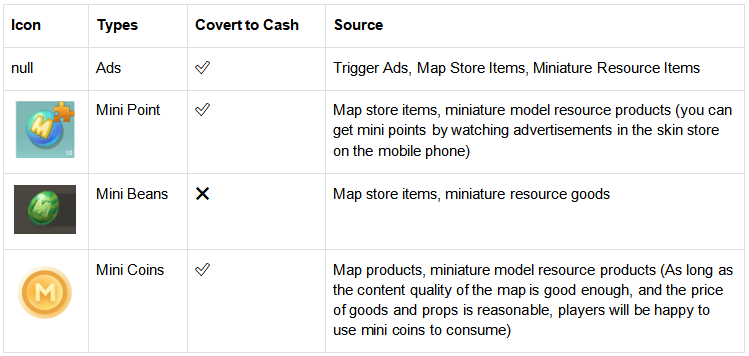 1. The revenue types of Mini World