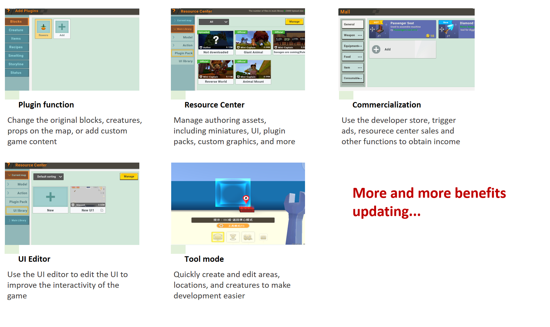 Developers can sell their own plug-in packages and miniature models in the resource center. However, players need to upload resources to the cloud before they can successfully list products.