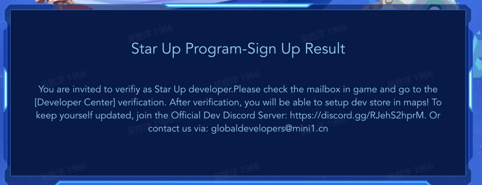 After the application is approved, you will receive the “Star Up Program” email, and then you can go to the Creator Center (https://developers.miniworldgame.com/center/#/login) for identity authentication.