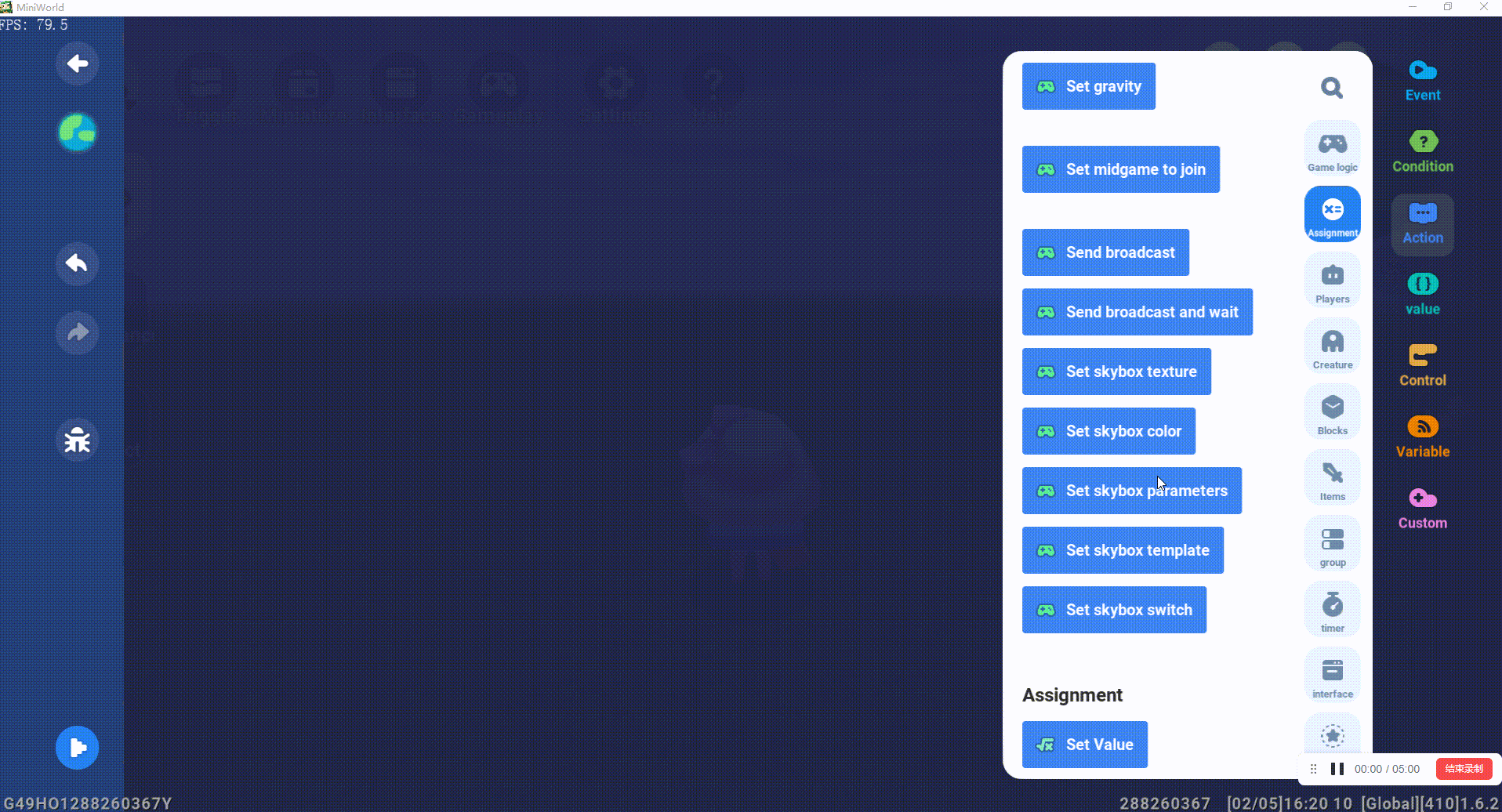 - Open skybox operation: Gameplay → World → Skybox setting;